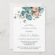 Turquoise and Peach Roses Diamond Wedding Invitation