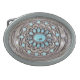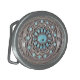 Express your unique sense of style with this custom oval burnished silver belt buckle with an image of embossed silver with fanciful leaves, braiding and beautiful turquoise cabochons. See the entire Gemstones & Medallions Belt Buckle collection in the ACCESSORIES section.