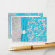 ****PLEASE NOTE that the ribbon and jewels are printed images, and are not real. This turquoise and silver floral damask reception enclosure card matches the wedding invitation shown below. If there are any other matching items you require, please email your request to niteowlstudio@gmail.com.