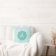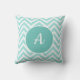 Turquoise and white chevron pattern with monogram throw pillow