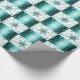 Turquoise and white snowflakes with circular words around them that read: "Wishing you a wonderful Merry Christmas and a Happy New Year".