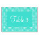 Turquoise and tiny white polka dot pattern with table number. You can customize the background and font color, as well as the font style and size.