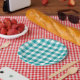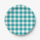 Turquoise and White Gingham Pattern Paper Plates