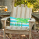 This classic tropical shades of turquoise blue and white wide stripe pillow is a summer staple. Add a colorful palm tree and Aloha and it becomes a tropical vision! You can change the text to whatever you want. A stunning addition to your outdoor living area. Perfect for the pool, beach, garden, ot anywhere you need a tropical vibe. These pillows are also available in indoor fabrics as well as outdoor fabrics, 3 styles/sizes to choose from.