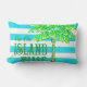 Turquoise and White Stripe Palm Tree Island Time Outdoor Pillow