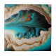 Turquoise Aqua Blue Gold Gemstone Acrylic Pour Art Ceramic Tile