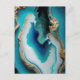 Turquoise Aqua Blue Gold Gemstone Acrylic Pour Art Postcard