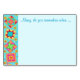 Cusomizable quilt RSVP or note card to add your own words or for any occasion. Quilt art based on original art features favorite patchwork quilt blocks plus unique blocks in vibrant and dynamic colors of orange, yellow, pink, turquoise, and lime green on a turquoise aqua blue background for a beautiful color palette.