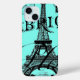 turquoise aqua blue scripts vintage Paris Eiffel Tower iphone case