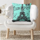 turquoise aqua teal scripts Paris Eiffel Tower Outdoor Pillow