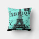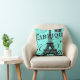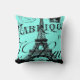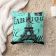 turquoise aqua teal scripts Paris Eiffel Tower Throw Pillow