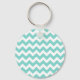 Turquoise Aqua White Chevron Zig Zag Pattern Keychain
