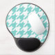 Turquoise / Aqua, White Large Houndstooth Pattern Gel Mouse Pad