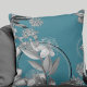 Turquoise Artistic Floral Design Throw Pillow