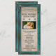 Turquoise Barn Wood Stars Western Wedding Programs - features a printed turquoise rustic barn wood frame in a rustic, reclaimed wood frame. The frame has a paint chipped vintage look with a printed antiqued/parchment paper inside. Multiple metal stars are decorated on the front and back. Change the demo picture to your own.