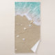 Beautiful turquoise beach waves rolling up on soft beach sand covered in pretty seashells decorate this towel set.