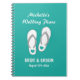 Beach theme wedding planner notebook or journal with heart flip flops design. Cute organizer for engaged couple / future bride and groom planning their marriage party. Elegant script typography with beach slippers. Pretty aqua / turquoise blue background or customize. Make your own handy little book for to do list, budget, costs, notes and plans. Handwritten style typography with summer sandals. Summer wedding in june, july, august.