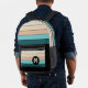 Turquoise Beige Teal Green Black Art Stripes Printed Backpack