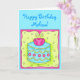 Happy Birthday card features an turquoise cake with pink flowers and a pink rose on a light green background with a whimsy pink border on a turquoise card. also great for general occasion. Fully customizable for personalization and message. Celebrate a birthday or other occasion with the whimsy cake and cupcake original art that is perfect for both boys and girls as well as adults. The colors are in both softer and more vibrant colors.