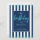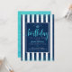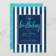 Turquoise birthday glitter script navy custom year invitation