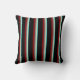 This throw pillow design features stripes colored turquoise, bisque, dim gray, dark red, and black.