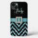 TURQUOISE BLACK CHEVRON GLITTER GIRLY Case-Mate iPhone CASE
