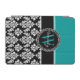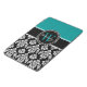 Turquoise, Black Damask Pattern Initial Name iPad Mini Cover