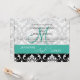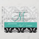 Turquoise Black Damask Wedding Invitation Monogram