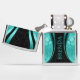 Elegant turquoise and black geometric design with floral damasks accent and customizable monogram.