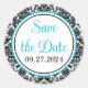 Turquoise, Black, White Damask Wedding Classic Round Sticker