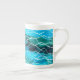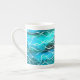 An eye-catching Bone China mug, with a turquoise blue, dark green, white and black abstract 'Waves' design, from a watercolour by Judy Adamson. Matching tea pot, pitcher and various mugs are also available.