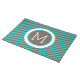 Turquoise Blue and Brown Stripes Pattern Monogram Cloth Placemat