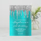 Turquoise Blue and Silver Drip 50th Birthday Invitation