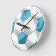 Turquoise Blue and White Soccer Ball Round Clock