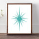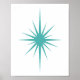 Turquoise Blue Atomic Starburst Mid Century Modern Poster
