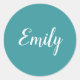 Turquoise Blue Cursive Script Name Pretty Classic Round Sticker