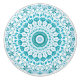 Bring vibrant, calming energy into your home with this eye-catching table runner. The design features an intricate mandala pattern with a mesmerizing radial symmetry in shades of turquoise and teal against a white background. The mandala design is made up of delicate floral motifs and flowing lines that radiate outward like petals, creating a sense of depth and motion.