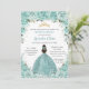 Turquoise Blue Floral Princess Gold Quinceañera Invitation