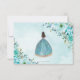 Turquoise Blue Floral Quinceañera Gold Princess RSVP Card