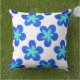Turquoise Blue Flower Pattern Outdoor Pillow