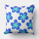 Pillow printed with original acrylic flower pattern in shades of blue on white background.