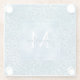 Turquoise Blue Glitter Leopard Print Monogram Glass Coaster