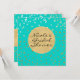Turquoise Blue & Gold Shiny Confetti Dots Modern Invitation