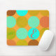 Turquoise Blue Green & Orange Circles Monogram Mouse Pad