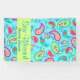 Catch the eye of your customers with this colorful and custom banner that features a whimsy paisley design that pops on a turquoise blue background and a lime green stript for customizing with your business name and type. The bold colors of this trendy paisley design combines with bright, fresh, modern paisleys to make a beautiful artistic design that includes inspirational words of Love, Hope, Faith, Inspire, Cherish, Be Happy, Dream, and Live in the background between the paisleys. This Mod Paisley collection, designed by Phyllis Dobbs, uses the colors of teal, turquoise, lime green, lavender, yellow, fuchsia pink and orange to create a fun and whimsey take on the traditional and popular paisley motif. The paisley motif is timeless in appeal but this original art is both trendy and contemporary. Fully customizable for personalization with your own words to add your own message if you want to use it for other uses besides business. Phyllis can also customize other products for your store just by contacting her or help you if you have difficulty with the customization. All of the art used is copyrighted by Phyllis Dobbs Art & Design.