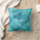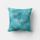 Turquoise blue ocean metallic glitter monogram throw pillow