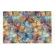 The mat is thin so, I glued the plastic sheet used in the packing that has the same color theme and brand name on the back, to the underside of the mat. I love the style, colors and design. Easy th clean. It takes me back to when I was a little girl. So adorable.....lines, colors and design are great. The mat should have been thicker though. It's like paper thin.