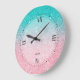 Turquoise-Blue & Salmon Pink faux Glitter Large Clock