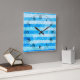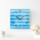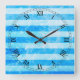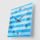 Turquoise Blue Sea Stripes Square Wall Clock