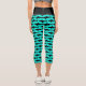 Turquoise blue shark fish pattern high waist Capri Leggings. Custom color tights with animal print. Great for summer party, boating, sailing, yachting, fishing, yoga, sports and more.